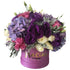 Arreglo en caja Le Florence de 15x20cm con 50 rosas premium, lisianthus, hortensias de invernadero y hoja gris. Elige el color de caja: negra, blanca, lila, dorada. Puedes elegir estampa con el texto de: Felicidades, Happy Birthday, Gracias, I Love U. Mide aproximadamente 35x35cm.