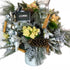 Arreglo en cilindro 20x20cm con follajes de Navidad premium, nochebuenas, canelas y esferas. Mide aproximadamente 70x65cm.