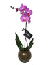 Orquídea phalaenopsis de una vara en pecera de cristal. Mide aproximadamente 50x15cm. Puede ser en color rosa o blanco.